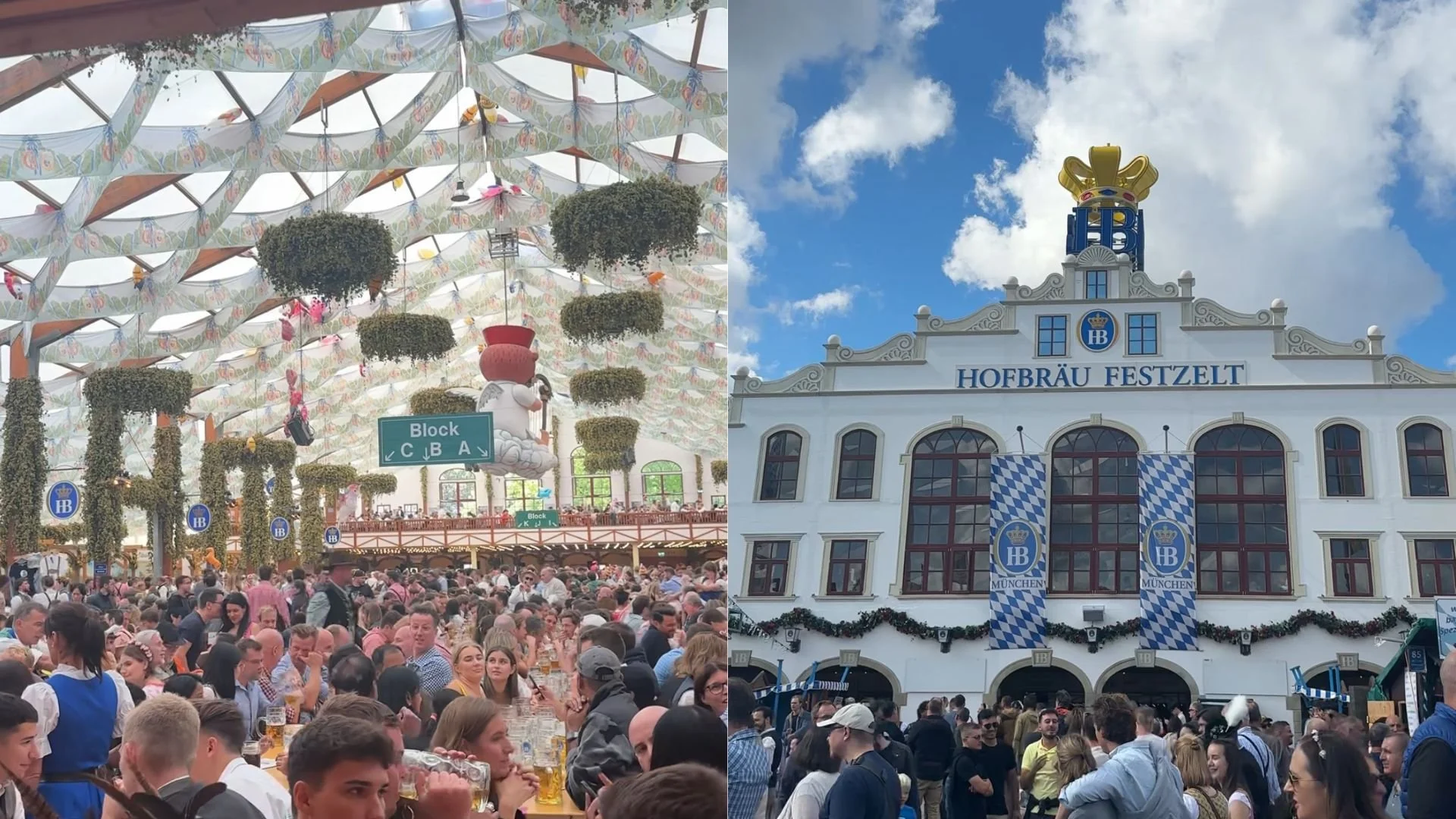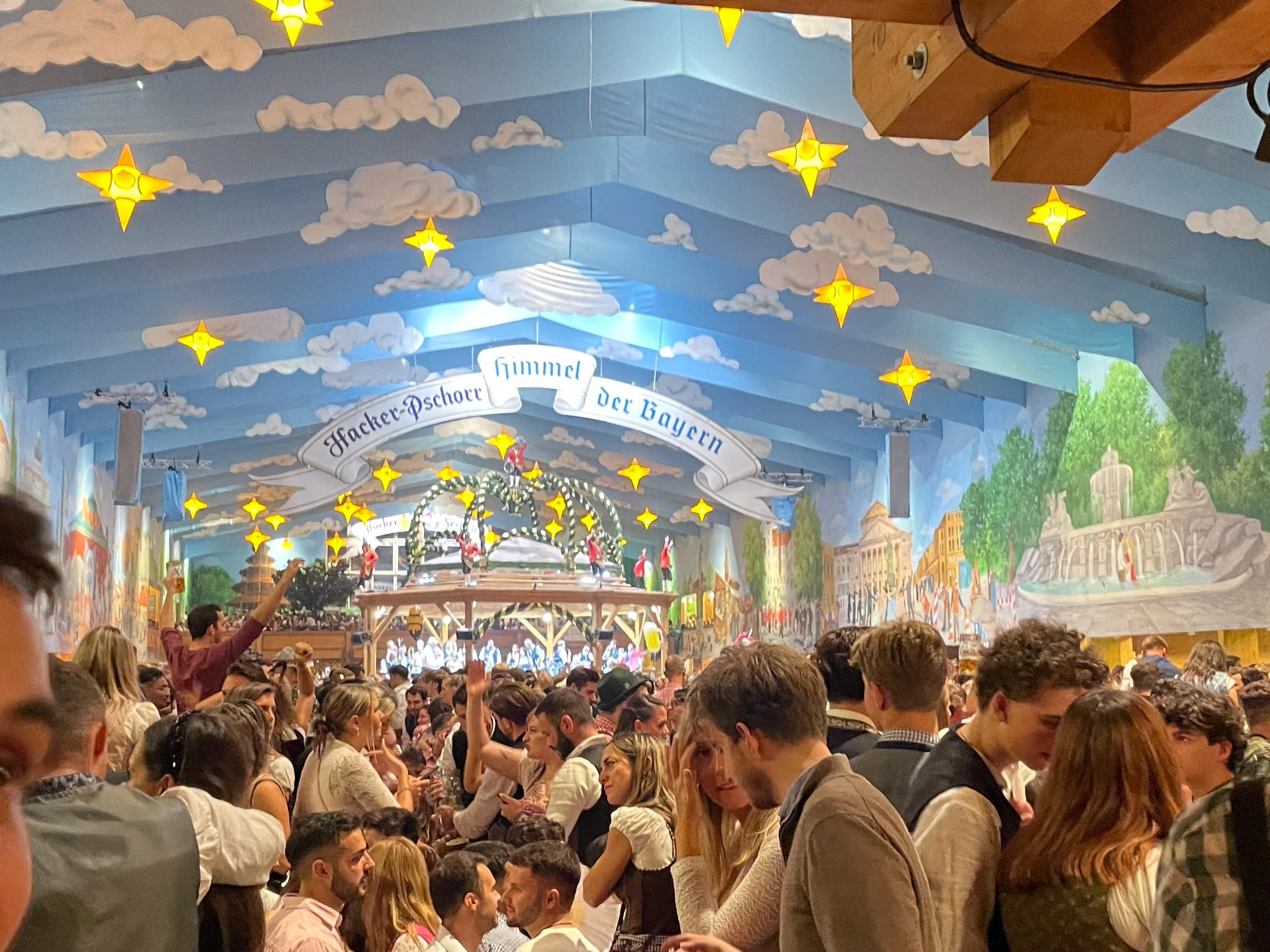 Hacker Festzelt: This tent was so stunning and they had a live band playing rock and roll music. The inside looks very angelic with the clouds and decor. This was the most fun tent during the day! We also visited during the day and it had such a great vibe!